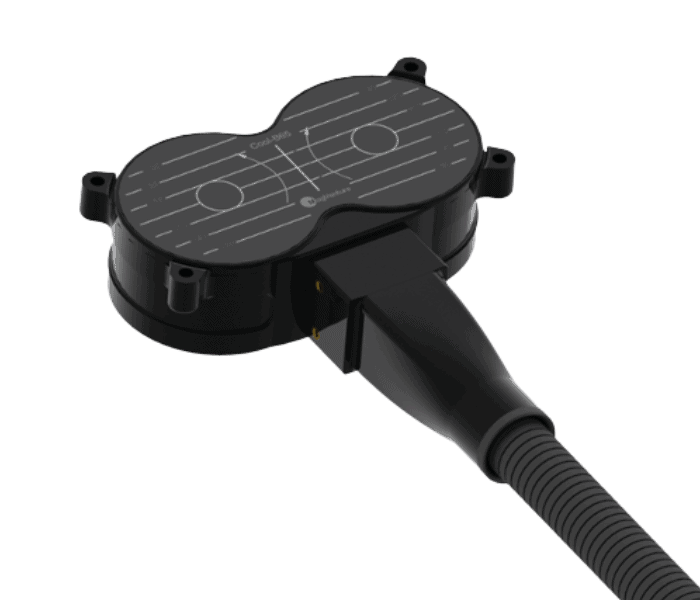 Butterfly (figure 8), Active cooling The Cool-B65 CO coil is designed specifically for use with an Axilum Robotics Cobot system solution. The coil has the same properties as the standard Cool-B65 coil – butterfly-shaped, with active cooling, for focused stimulation and demanding protocols that require a very high number of stimuli. Optimized for high repetition rates and long pulse trains. Cooled by an external Cooler Unit. It has a built in timer and counter indicating the remaining pulses/days. The CO version does not have a trigger switch or LED in the handle.
